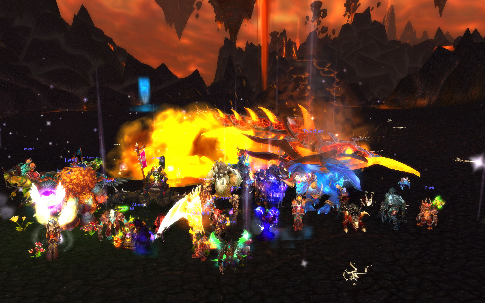 This is the third time we have killed Onyxia but only the second death for Nefarian, I fully expect Deathwing to have a similar gigantic lightning generator to ressurect the pair for a phase one or two encounter. The black dragonflight simply cannot be killed, didn't we already kill Deathwing back in Warcraft 2: Beyond the dark portal?! Regardless, awesome dedecation from our raiders holding though all the healer recruitment and repeated relearning we endured killing this encounter.