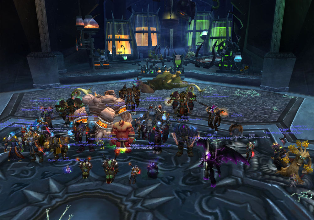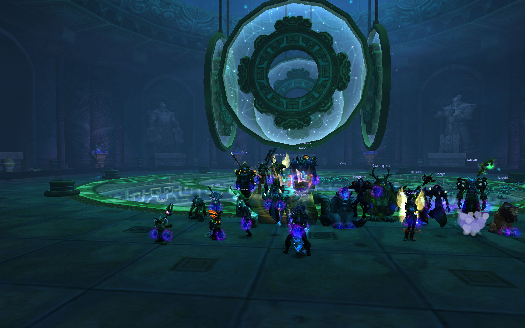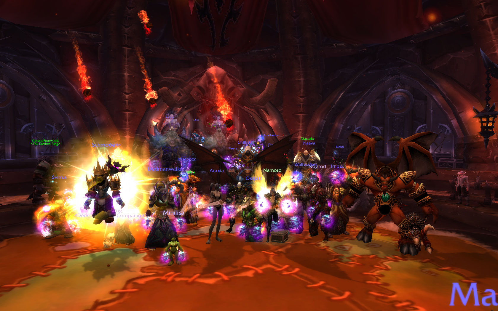 So yes, spine was the cockblock that everyone else said it would be. Shocker. Although we by no means breezed the madness encounter it did not require the degrees of finesse required in the previous fight. Once he was dead and we had sorted out the loot (a long time given our loot distribution!) we started to set up for a screenshot. At this point we realised that we already had a photo of this exact spot, so we decided we would go and take one looking at the end boss of Mists of Pandaria! I gave up trying to organise a decent screenshot. Somewhere in the above screenshot is a complete random who is not even in the guild, "Wheres Waldo" style. Expansion over? Bring on the pandas and kungfu!