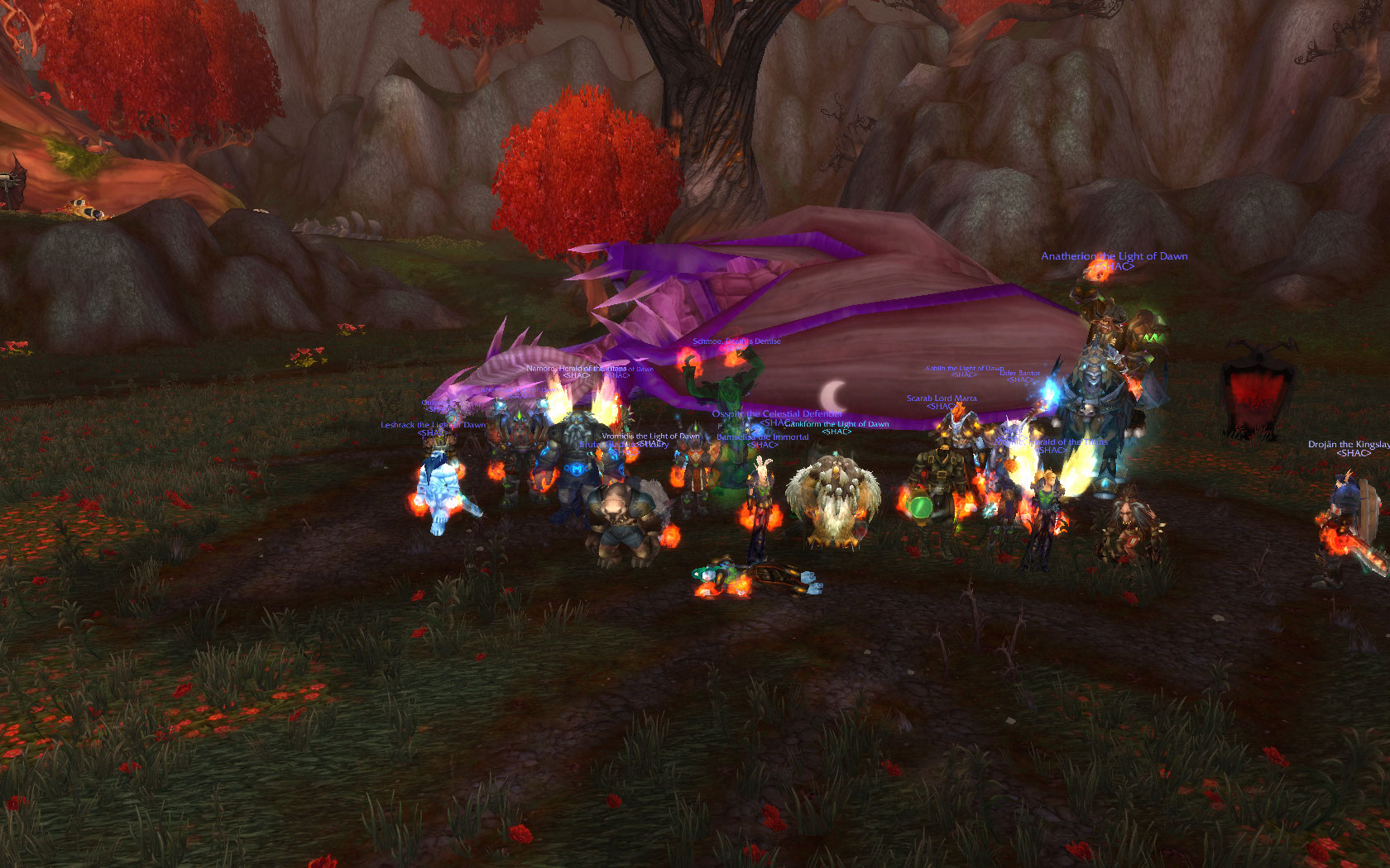 It likely comes as a shock to realise that this webpage is updated largely infrequently. Presently we have killed 5 heroic bosses and only two appear on the front page. Willing to hire a photographer so I can get them up here. Also looking for members! Turns out killing this many bosses wears people out. Who would have thought it blizzard.